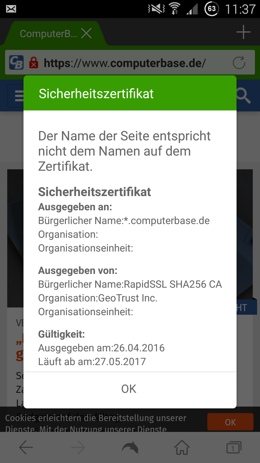 (...) und wälzt die Entscheidung "Fortsetzen oder Verbindung trennen" auf den Nutzer ab (anstatt einfach konsequent abzubrechen, denn wirklich beurteilen kann der durchschnittliche Nutzer das Problem ohnehin nicht und wird nur noch mehr dazu erzogen, Warnungen wegzuklicken).