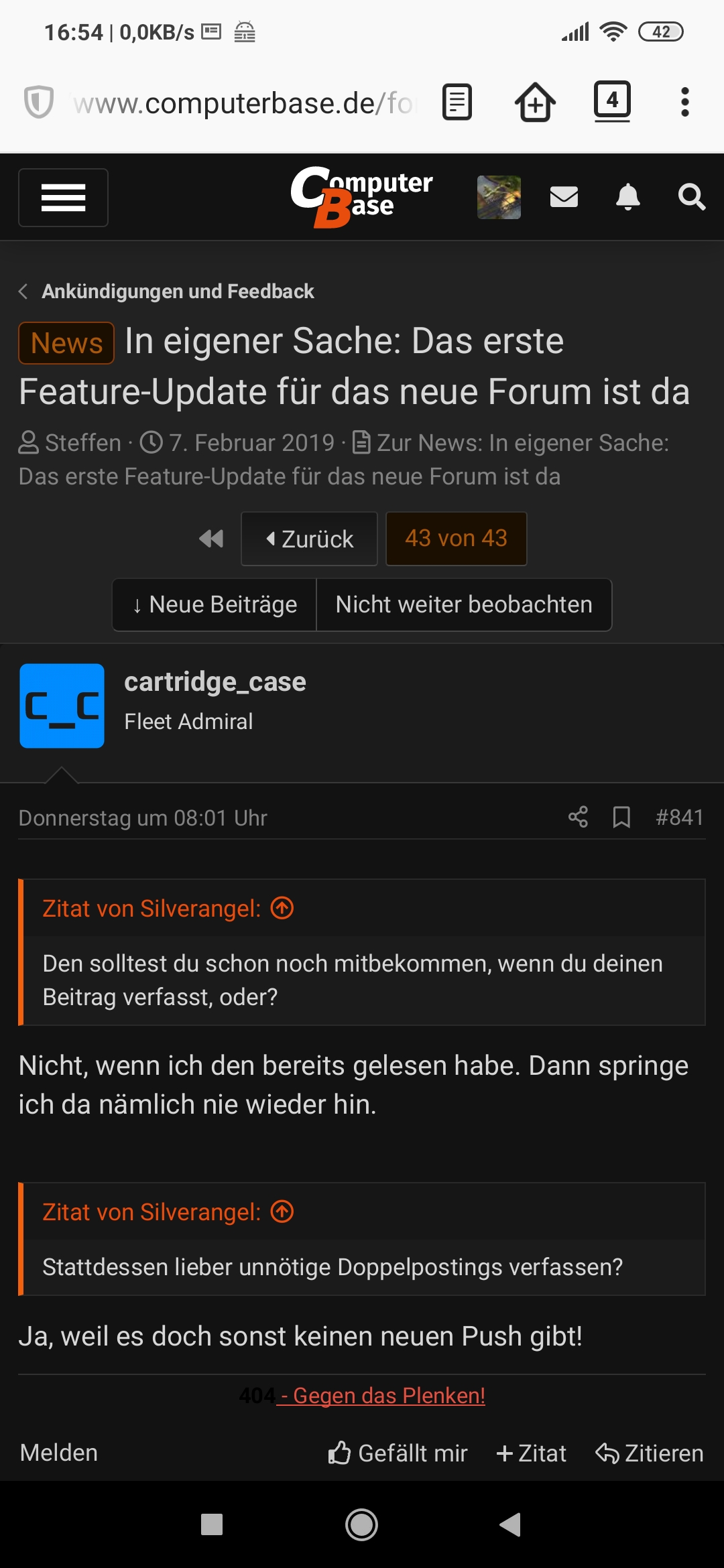 Geh mal auf https://www.computerbase.de/forum/account/alerts. Da sollten unter anderem die folgenden Benachrichtigungen zu sehen sein: HerrAbisZ, DerFakeAccount, Wilhelm14, Tr1ppellink (bis hierhin noch in deinem Screenshot sichtbar), wern001, c-mate, …