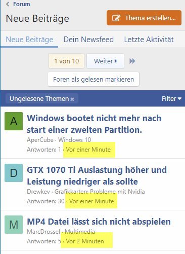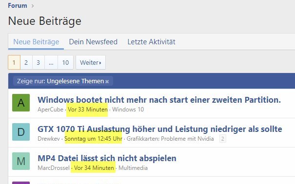 In beiden Fällen gibt es natürlich noch den Link in der Überschrift, der zum ersten ungelesenen Beitrag führt.