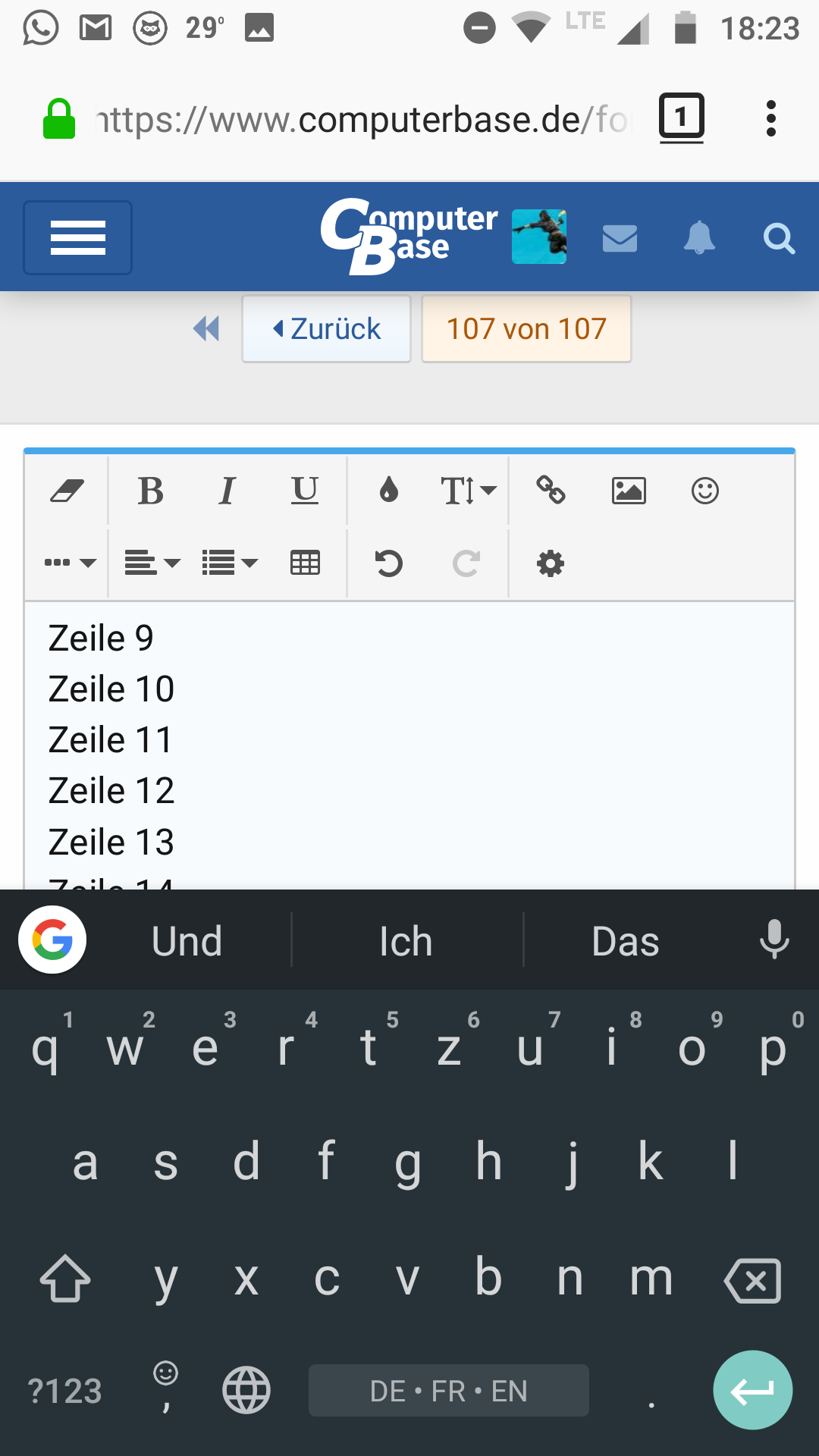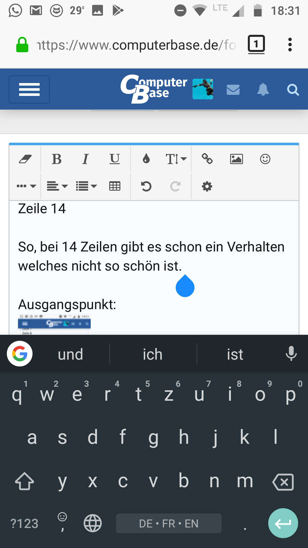 Android 8.0 mit FF 61 und der AOSP Tastatur. Galaxy S7.
