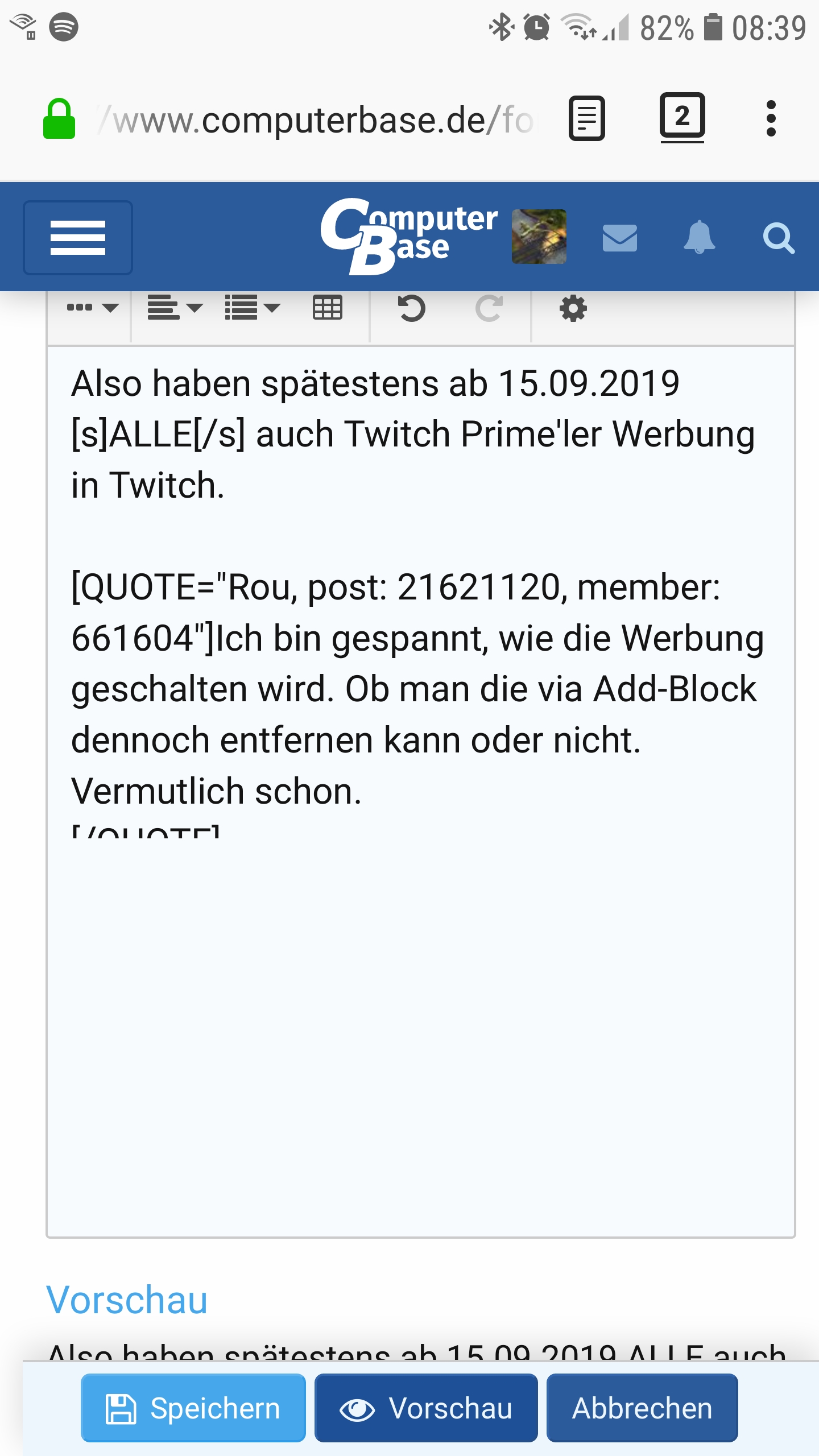 Noch was. Wenn man ein Post bearbeiten will: Klick auf den Bearbeiten Link und hat noch nicht in das Textfeld geklickt, dann funktioniert mindestens der Vorschaubutton nicht.