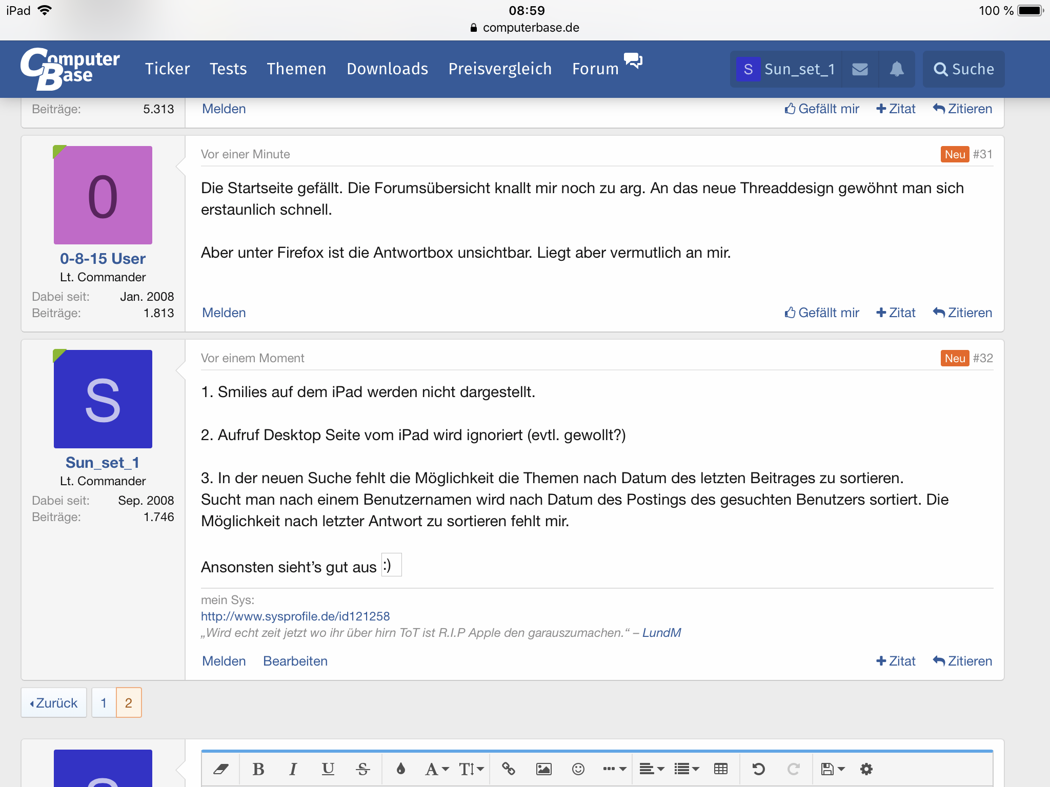 Die Startseite gefällt. Die Forumsübersicht knallt mir noch zu arg. An das neue Threaddesign gewöhnt man sich erstaunlich schnell.