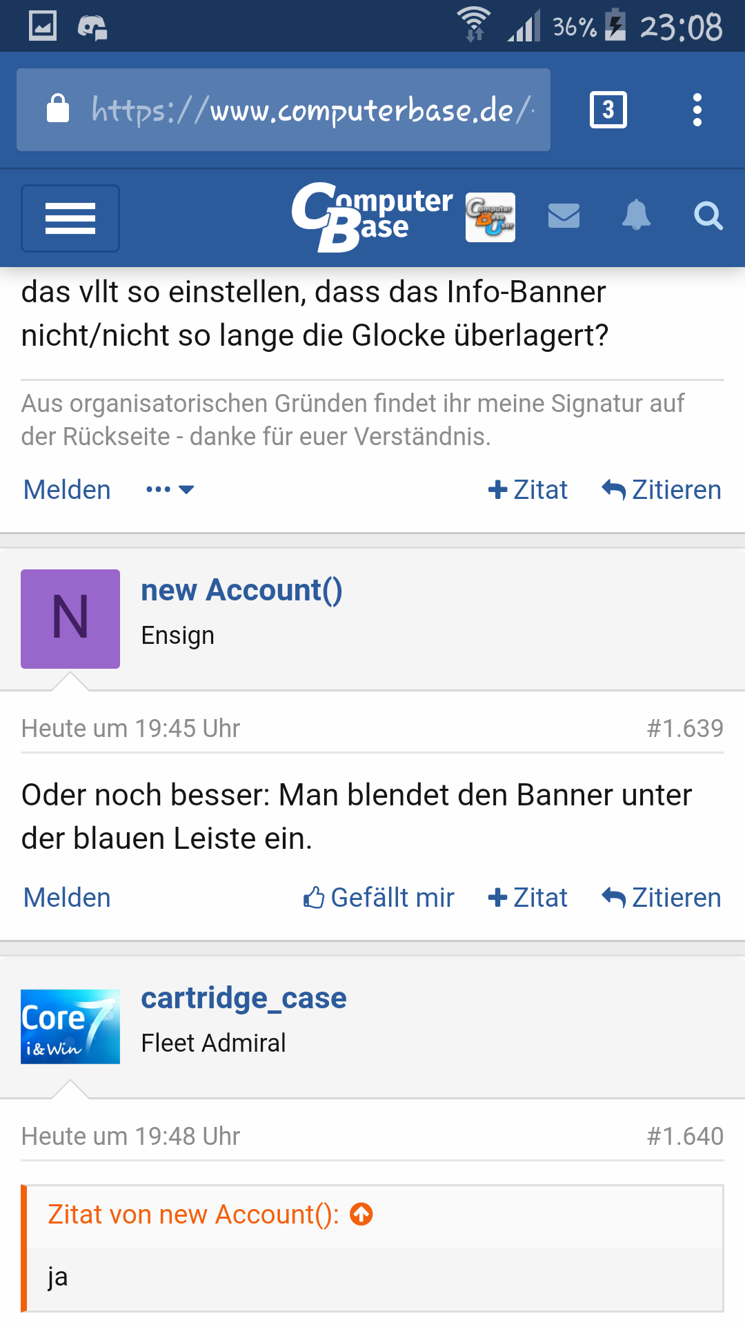 Generell mein ich und nicht erst per Option. Dann hätten auch nicht eingeloggte Leser und Leute, die die Option nicht kennen was davon und müssten nicht bei jedem Post lesen, was für geile Operaplugins und Festplatten die Leute haben.