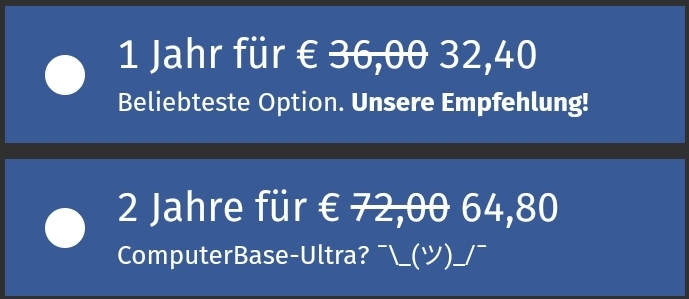 Aktuell sind es 2,70€, da es im Angebot ist. Eventuell auch, weil ich CB Pro hab. Hatte mich auf den angezeigten Preis bezogen. Ohne Rabatt hast du natürlich Recht.gustlegga schrieb:Eigentlich sind des sogar ganz genau 3€ im Monat (beim 1 bzw. 2 Jahresaccount)![]()