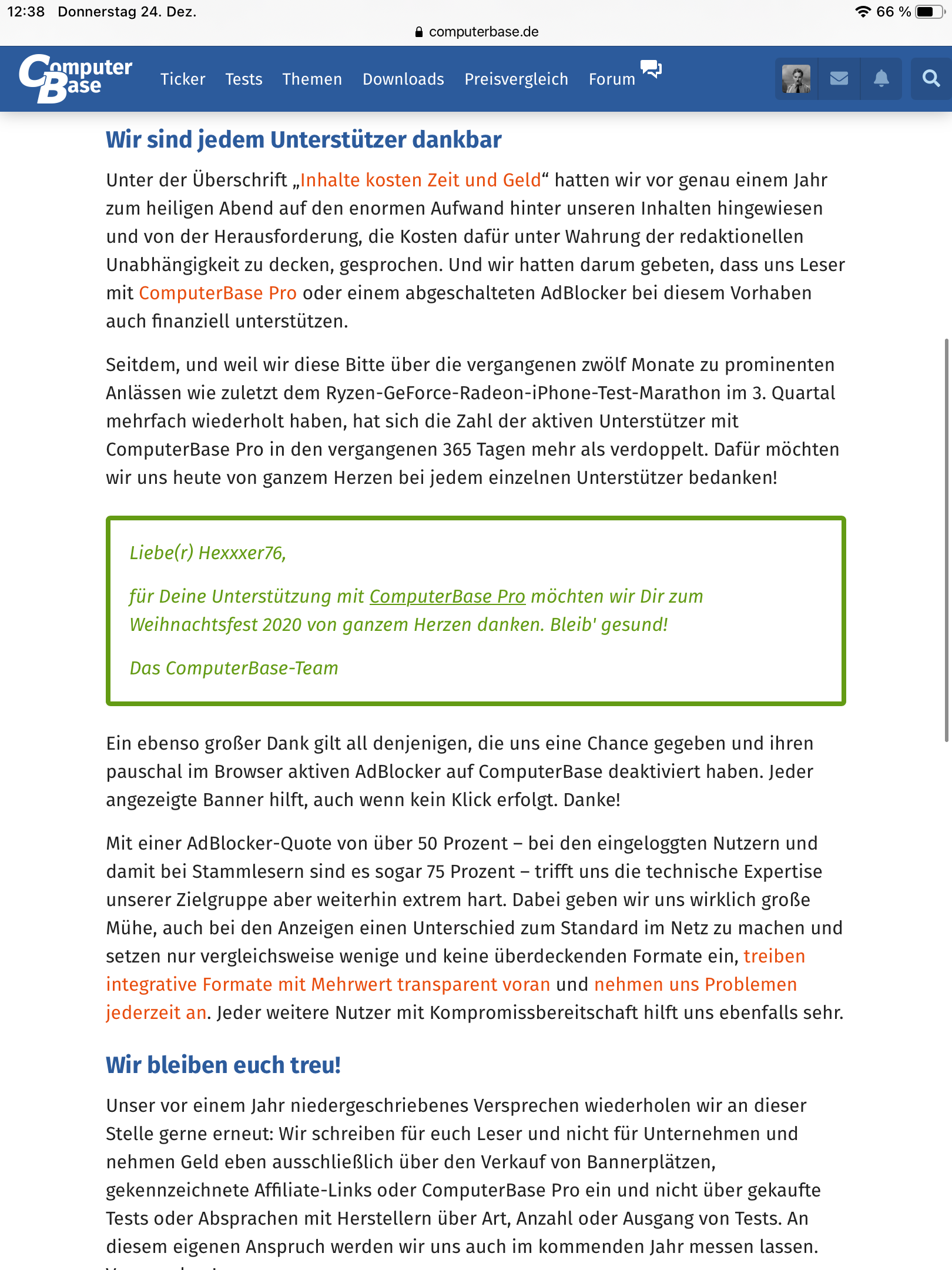 Was den AddBlocker angeht - die Werbung auf CB ist dermassen unaufdringlich, dass ich hier meinen uBlock grundsätzlich deaktiviert lasse. Daher habe ich persönlich kein Verständnis für die Leute, die hier - vermutlich größtenteils gedankenlos - weder Pro noch "kein Blocker" nutzen...