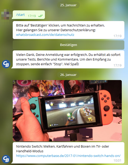 Auf unserer Push-Seite ist Telegram noch nicht eingebaut, aber unter folgender URL könnt ihr unseren Telegram-Bot schonmal vorab testen: https://widget.whatsbroadcast.com/widget_more/319691daa62a19f7bdf5b62b847722bc/