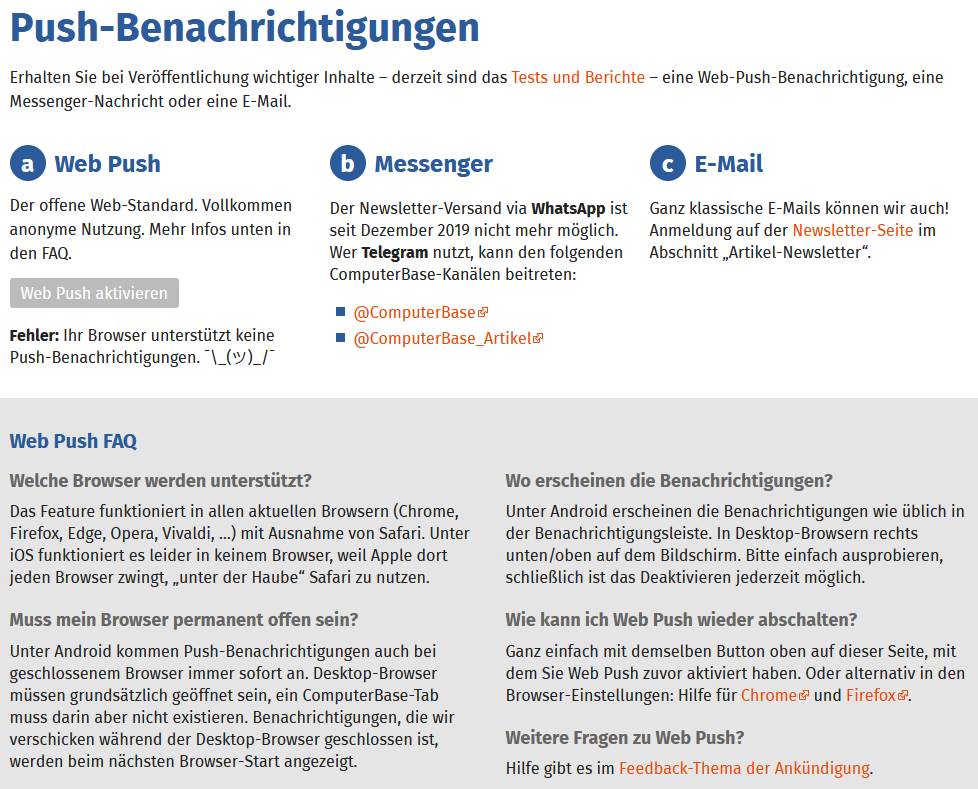 Diesen Browser-Dialog bekommt man auf ComputerBase nicht zu Gesicht, ohne zuvor irgendwo auf einen Website-Button zu klicken, mit dem Push-Benachrichtigungen aktiviert werden.DeusoftheWired schrieb:Glaube eher, daß es die sind: