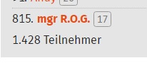 Habe meine Punkte heute auch gepflegt von 11 auf 22 verdoppelt nach einer Nullrunde gestern. War aber auch mal bitter nötig. Mein Ziel, endlich einmal in die Top-100 zu kommen, liegt leider trotzdem in weiter Ferne. ^^