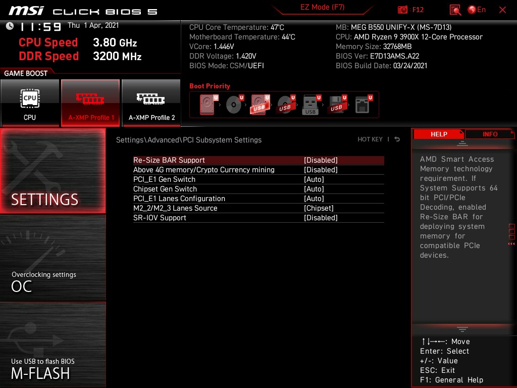 - Mainboard: MSI MEG B550 UNIFY-X