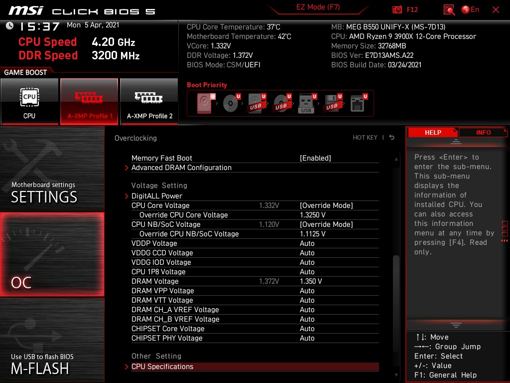 Board: MSI X570 Tomahawk (neuestes BIOS)