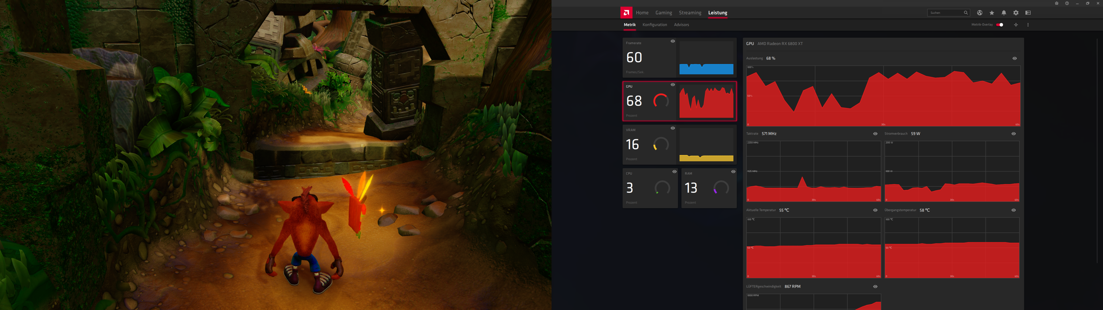 Kannst du bitte während du Crash spielst die Metrik von Radeon anmachen und ein Screen davon hochladen?