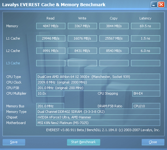 Dein Speicher scheint nicht im DualChannel Modus zu laufen. Steck deinen zweiten Riegel mal in den Slot3. Dann mach mal nochmal einen Memory Benchmark. Die Werte sollten dann um einiges höher sein.