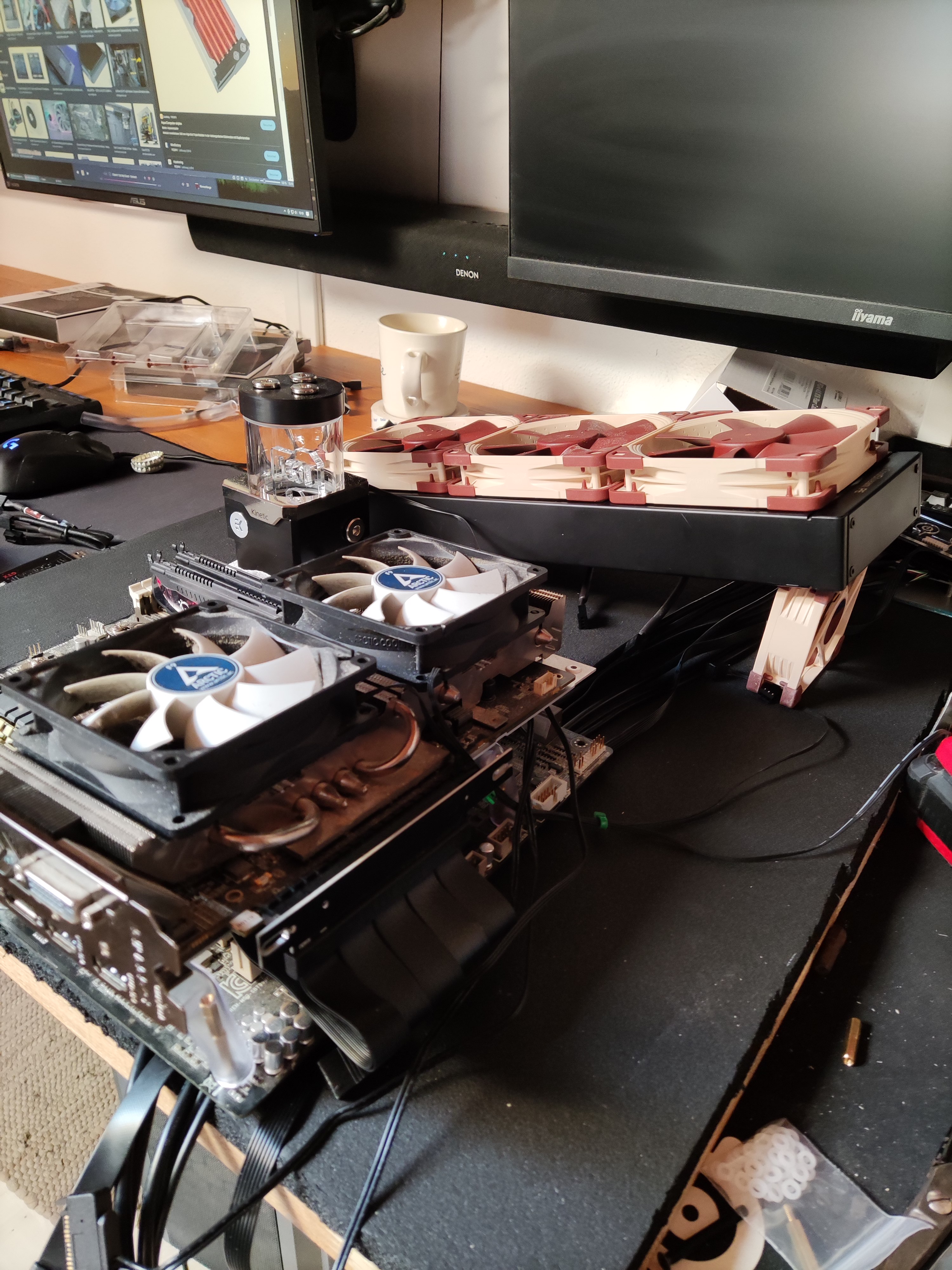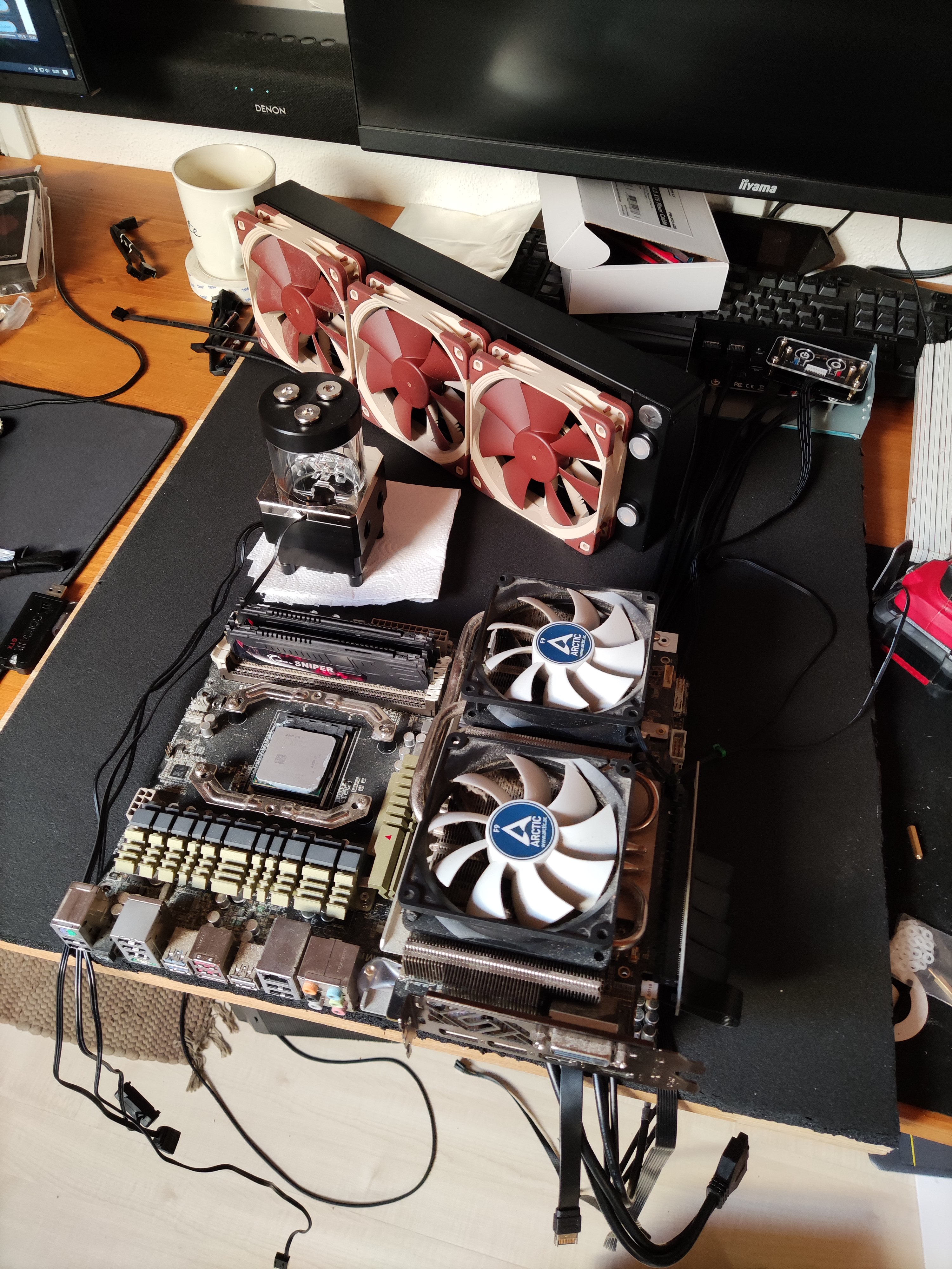 Wichtig zu erwähnen ist noch, das es meine erste Wasserkühlung ist. Mit der Erfahrung fange ich quasi bei null an, ich habe mich aber im Internet bereits eingelesen und YT-Videos angeschaut, wie man WaKü's richtig einbaut. Jedoch sind die meisten Tutorials auf die Montage im Computergehäuse zugeschnitten.