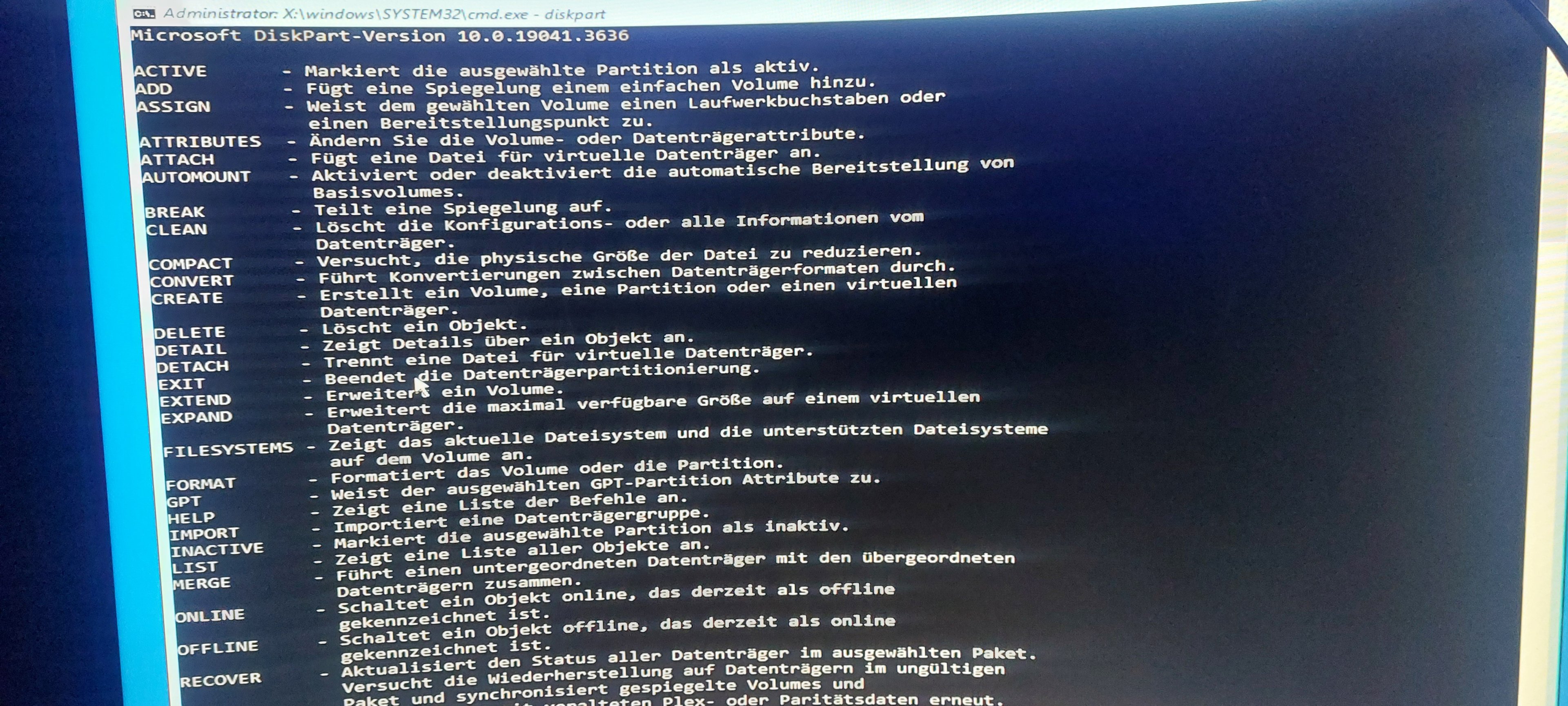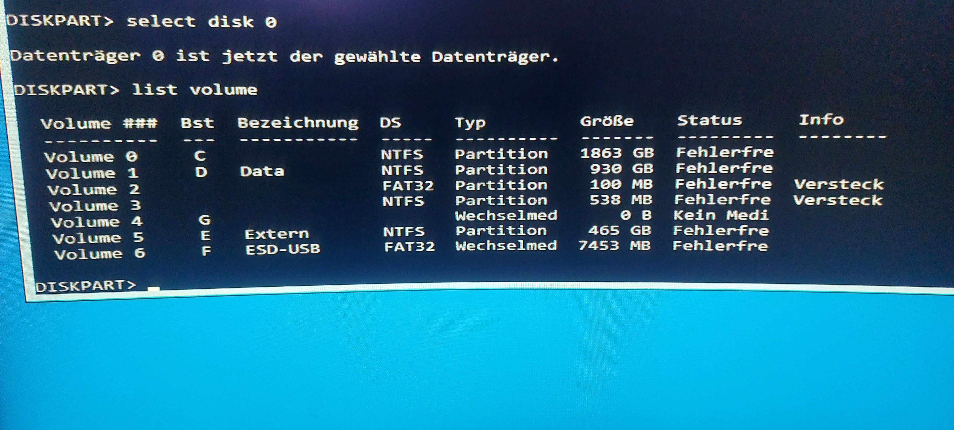 list partition (so sollte es aussehen aber es sollte die 100 MB System fehlen)