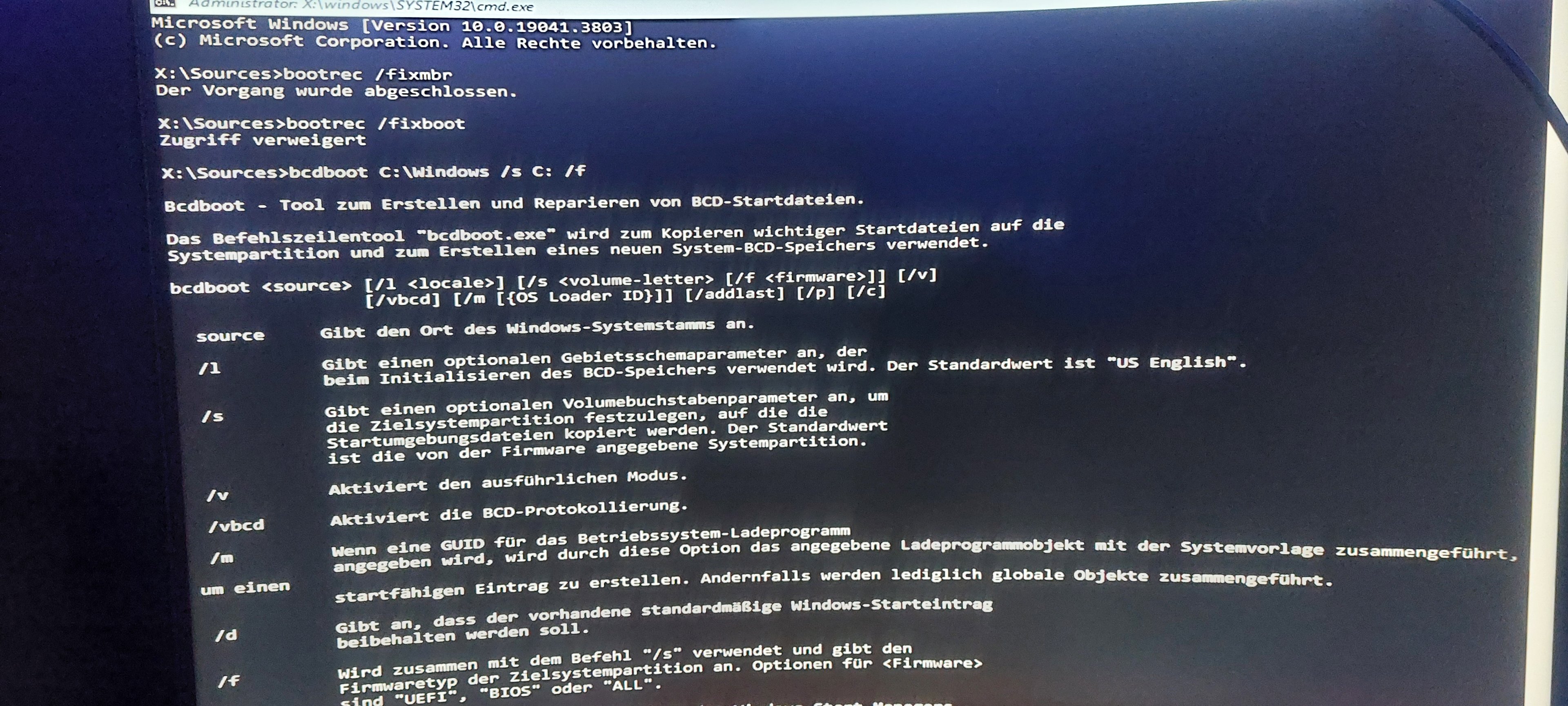 falls bei /fixboot fehler auftreten mach bevor du weiter machst das: