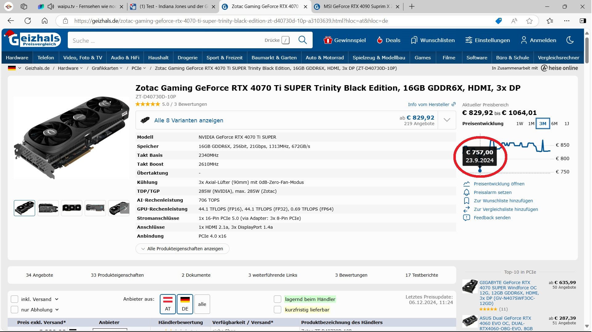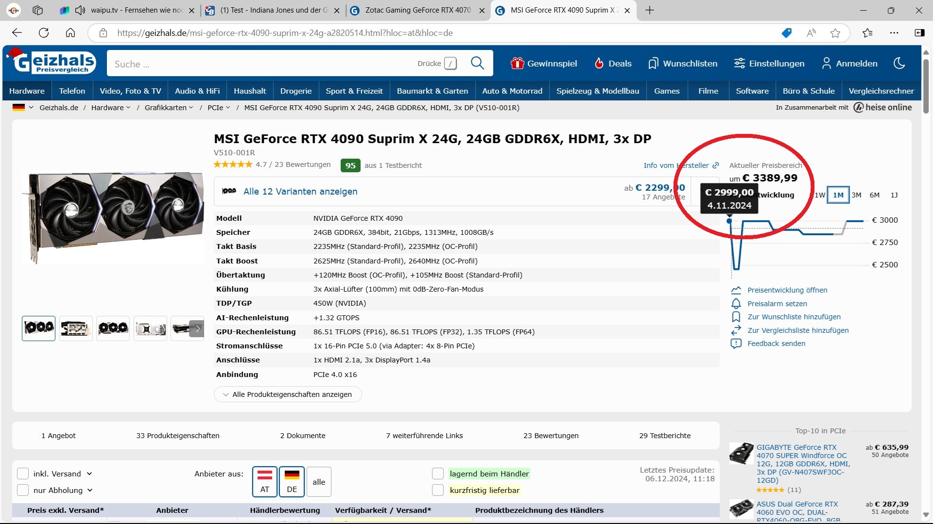 Denn 750 € (4070 Ti Super) zu 3000 € (4090) lag im Bereich des Möglichen und entspricht dem 4 fachen.