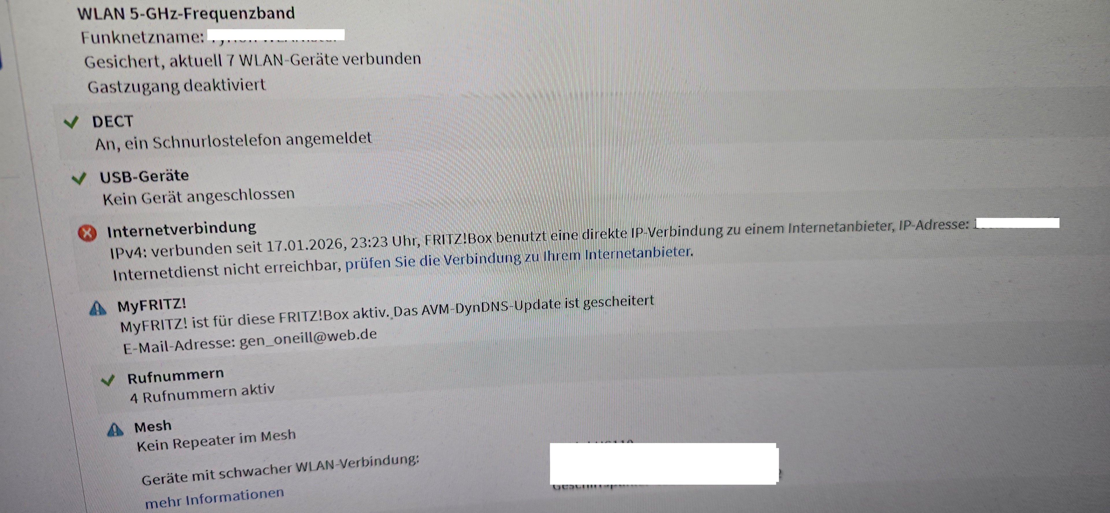 stecke ich die alte 7590 wieder an, ist das internet sofort wieder da, aber die 2,4ghz geräte funktionieren wieder nicht.