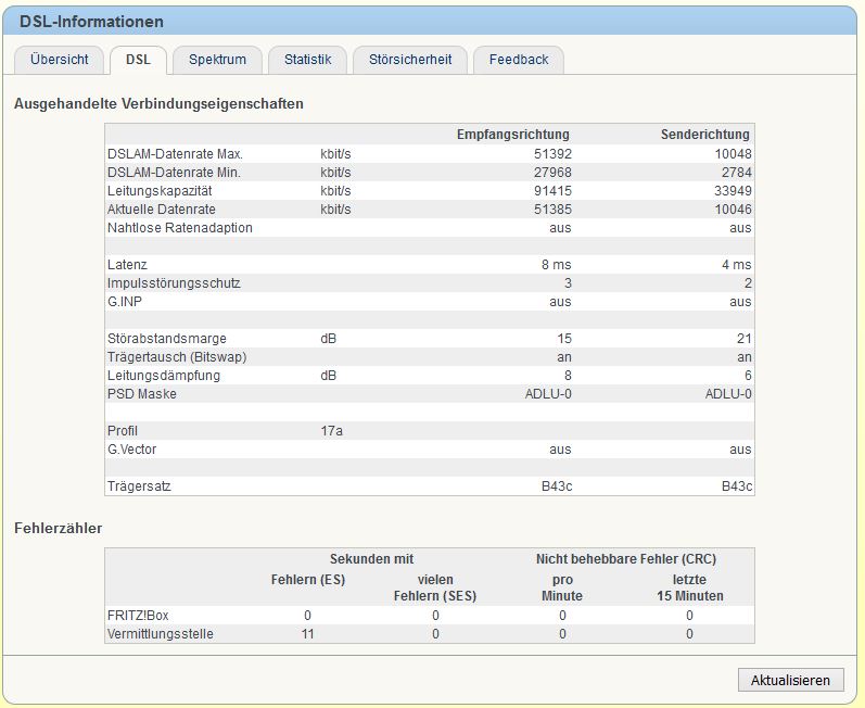 Hier mal ein Screenshot meiner Verbindungseigenschaften aus der Fritzbox während einer Fehlerbehafteten Verbindung. Sollten weitere Infos nötig sein, könnt ihr diese gerne erfragen.