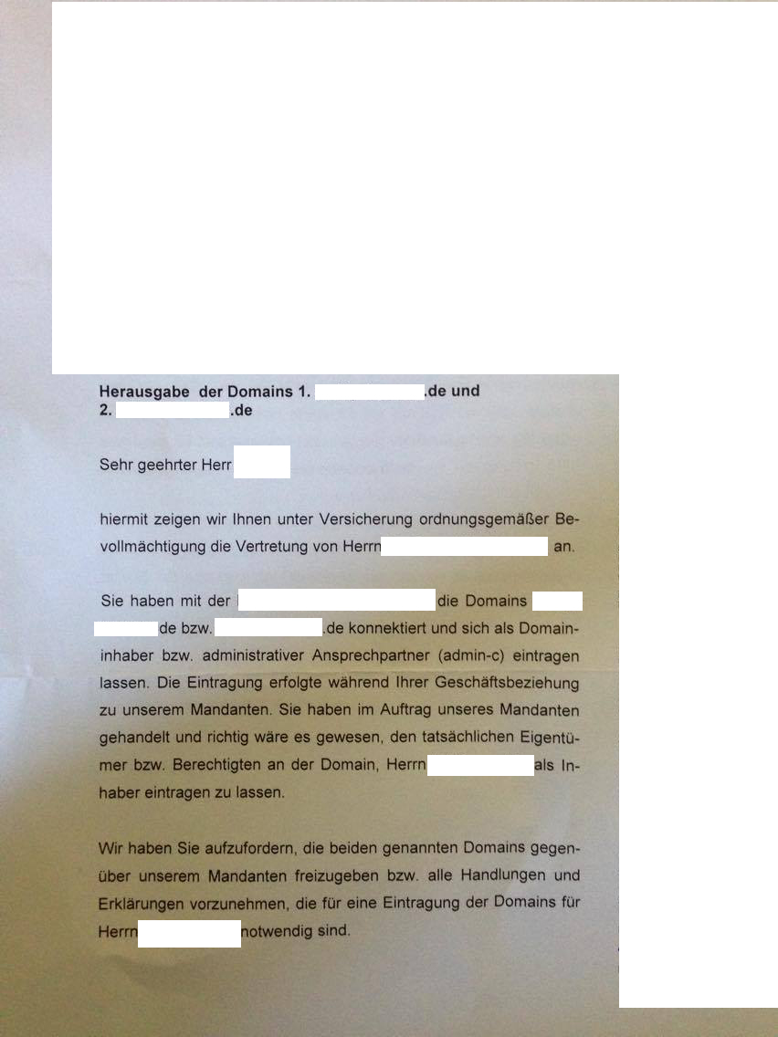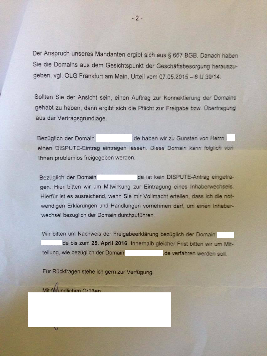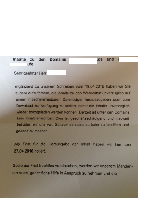 hier wird verlangt die domain herrauszugeben, bzw. die internetseite an sich. (neues schreiben von heute als ergänzung).