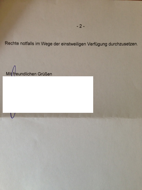 jetzt nach der vergangen zeit trudeln mir zwei schreiben ins haus (rechtsanwalt).