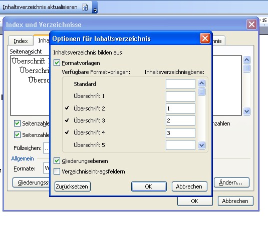 Die Überschriften 2 und 3 sollen ins Verzeichnis.