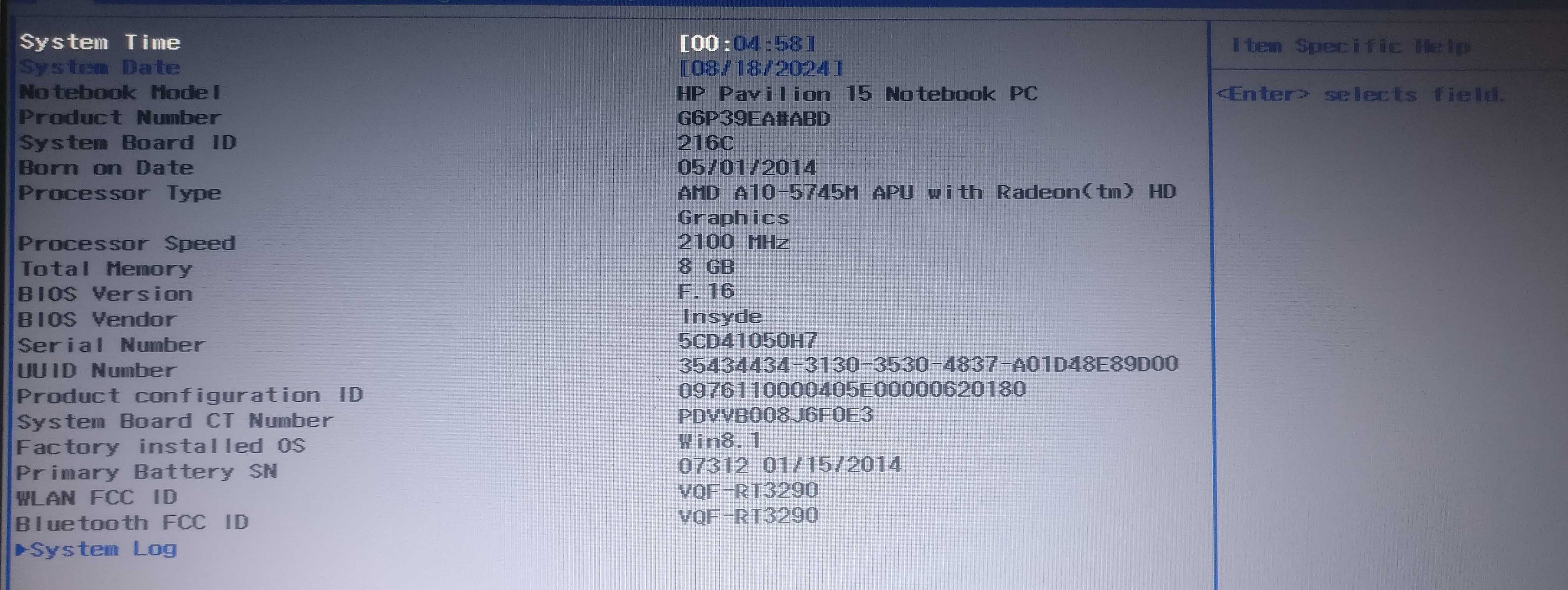 Foto vom Bios sind beigefügt.