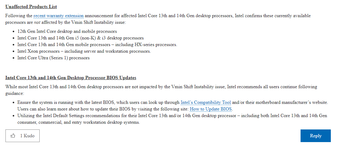 Obwohl die meisten Intel Core Desktop-Prozessoren der 13. und 14. Generation nicht von dem Problem der Vmin Shift Instabilität betroffen sind, empfiehlt Intel allen Anwendern, die folgenden Hinweise zu befolgen: