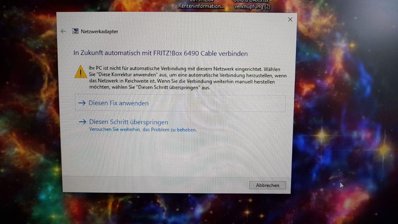 ein Bekannter von mir hat ein Problem mit seiner WLAN-Verbindung an seinem Desktop-PC. Leider kann ich nicht sagen, um was für einen PC oder Adapter es sich genau handelt. Auf dem Pc kommt Win10 zum EInsatz und er nutz Norton Total Security. Bei den Problemen handelt es sich um eine stark schwankende Signalstärke bishin zu einem Verlust des WLAN-Signals. Aufgetreten sei dies im Zusammenhang mit einem Austausch einer efekten Fritzbox 6490. Bei zwei Handys tritt dies Problem an der Firtzbox nicht auf. Auffällig ist noch, dass der PC die Verbindung nicht automatisch herstellt, sobald ein Netzwerkkabel reingesteckt wird, sondern er erst manuell dazu aufgefordet werden muss. Bei der Verbindung über WLAN kommt in regelmäßigen Abständen eine Fehlermeldung, die den Adapter betrifft. Was kann das sein?