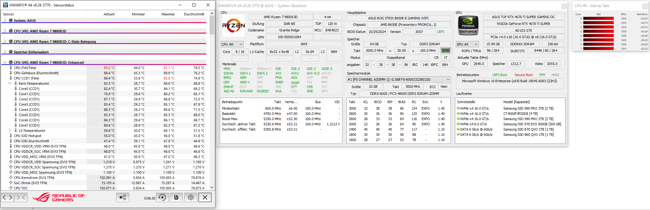 - Mainboard: ASUS TUF GAMING B650-PLUS (BIOS-Version 3263)