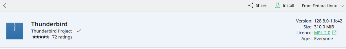 Aus dem dargestellten Angebot von Fedora und vom Plasma-Discover werde ich ehrlich gesagt nicht wirklich schlau, hier gibt es 2 TB-Versionen, einmal die 128.8.0, nicht ganz neu und nicht passend, oder es ist nicht wirklich klar welche Versions-Nummer vorliegt, ist lediglich als "stable" beschrieben, das könnte ggf. der aktuelle nicht-esr-Version 139.0.1 sein.