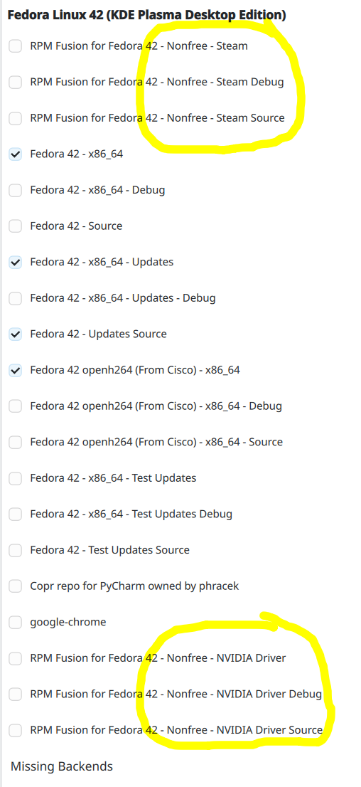 auch für Fedora zu geben, sie werden mir in der Oberfläche allerdings nicht angezeigt.
