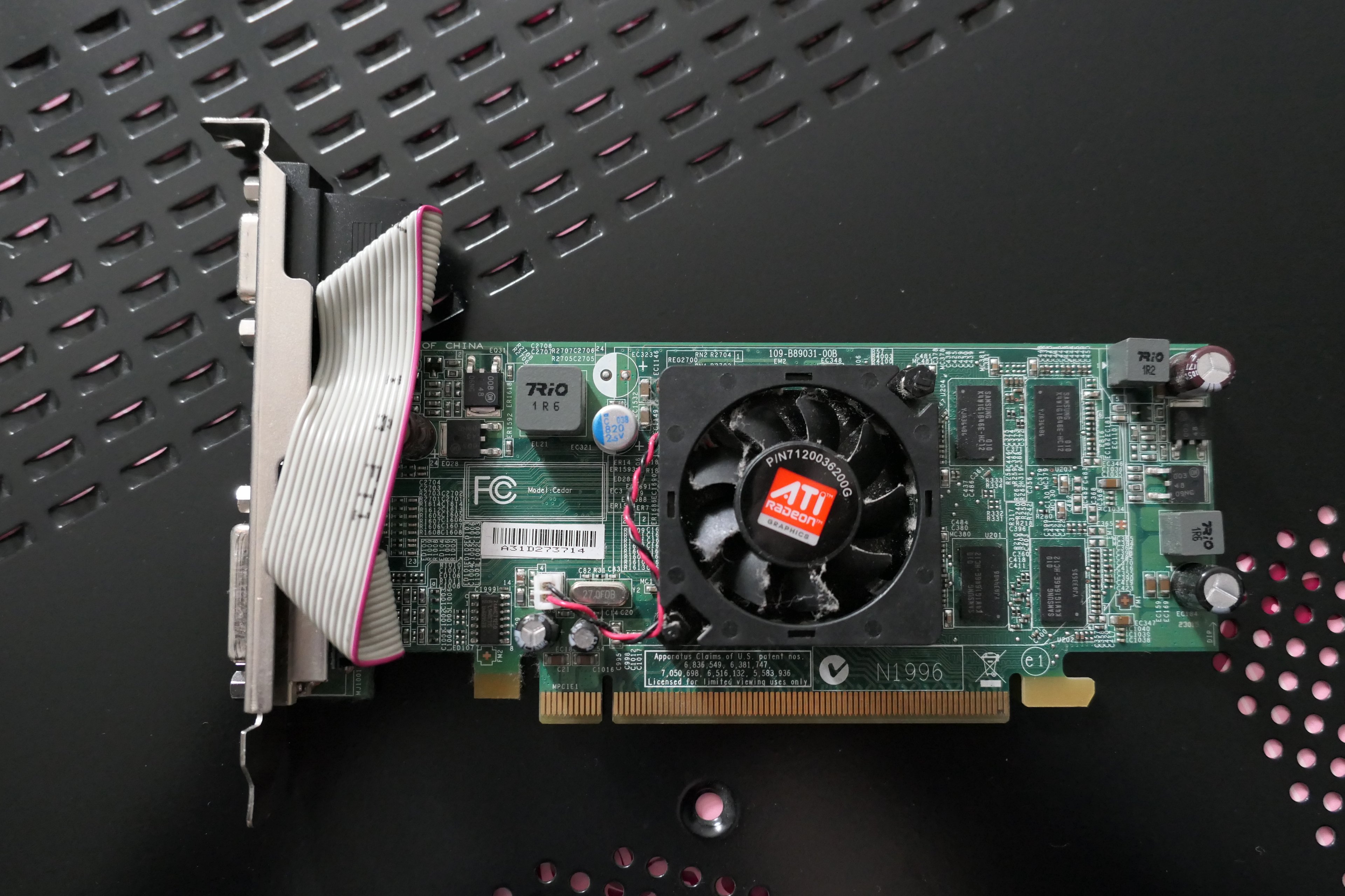 Ein bisschen Recherche ergab, dass es vielleicht eine ATI Radeon 4550 für einen DELL-Rechner ist. Ich habe die Grafikkarte im PCI-e-Slot installiert. Leider ist es mir nicht gelungen, die erforderliche Software (Treiber) zu installieren.