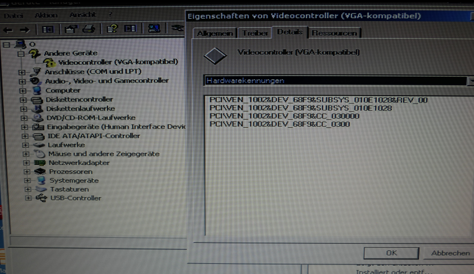 b) Ich habe zuerst versucht, einen Treiber von der AMD-Homepage zu installieren: AMD Catalyst 13.4 Legacy Beta Driver, Dateigröße 180 MB, Release Date 2013-04-29. Andere Treiber (non-Beta) konnte ich nicht finden. Die Installation des Treibers lief ohne Fehlermeldung durch. Nach einem Neustart wird die Karte nicht erkannt.