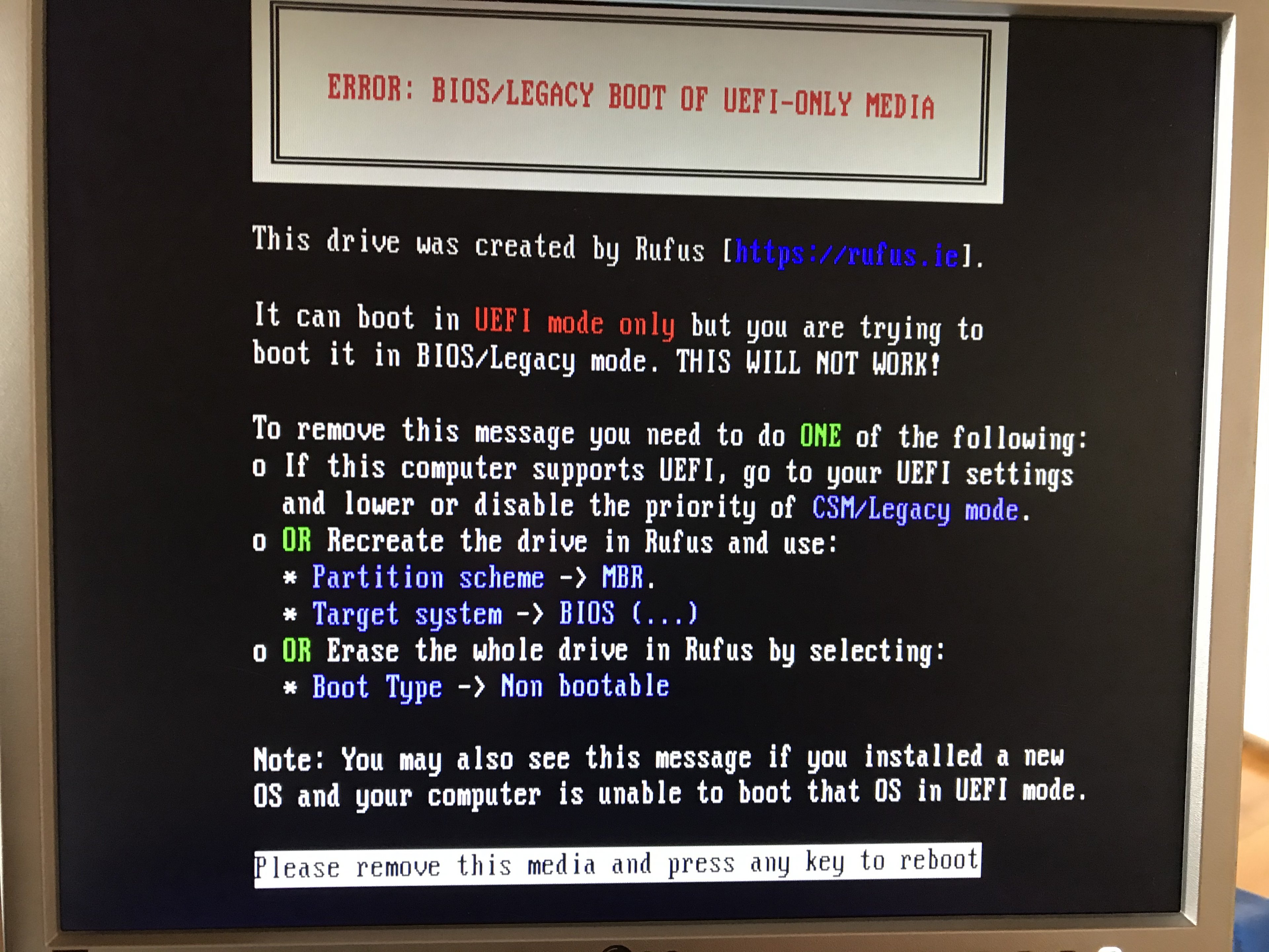 Ich habe auch schon Probiert die Bootreinfolge im Bios zu ändern was mich aber wieder zum Gleichen Problem geführt hat.