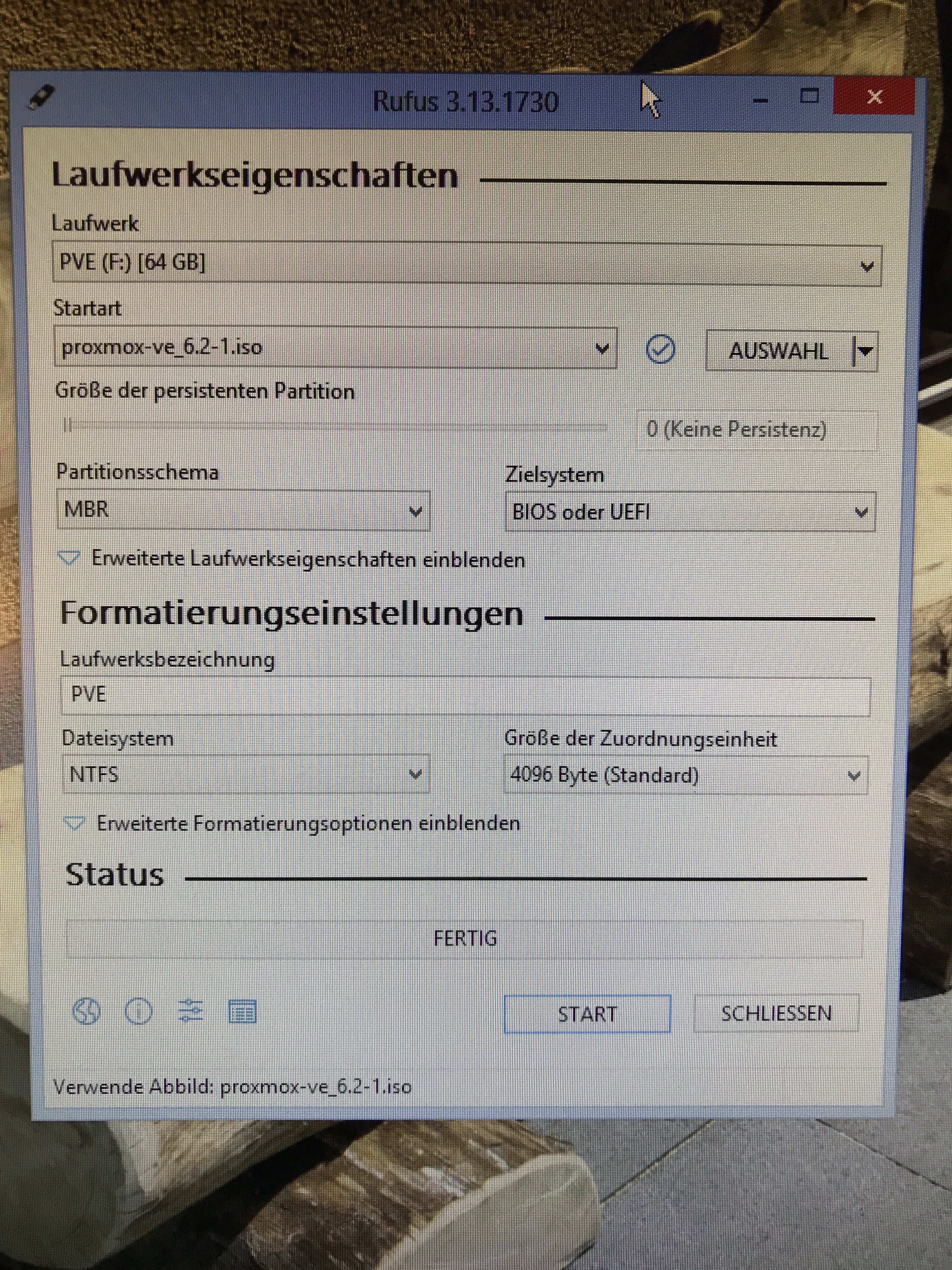 Und zwar habe ich Proxmox mit einen Stick booten lassen und damit Installiert was Problemlos funktioniert hat.