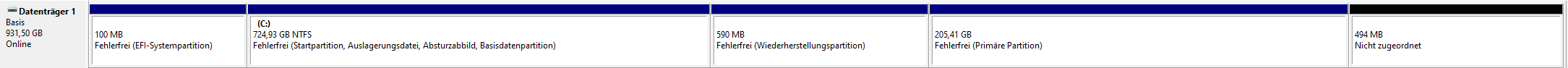 Ich habe mir die Partitionen mal angesehen. Ist es richtig, dass die erste Partition (mit 100MB) zu klein ist? Ich habe bereits versucht diese zu vergrößern, aber auch das funktioniert leider nicht. So sieht es in AOMEI Partition Assistant aus: