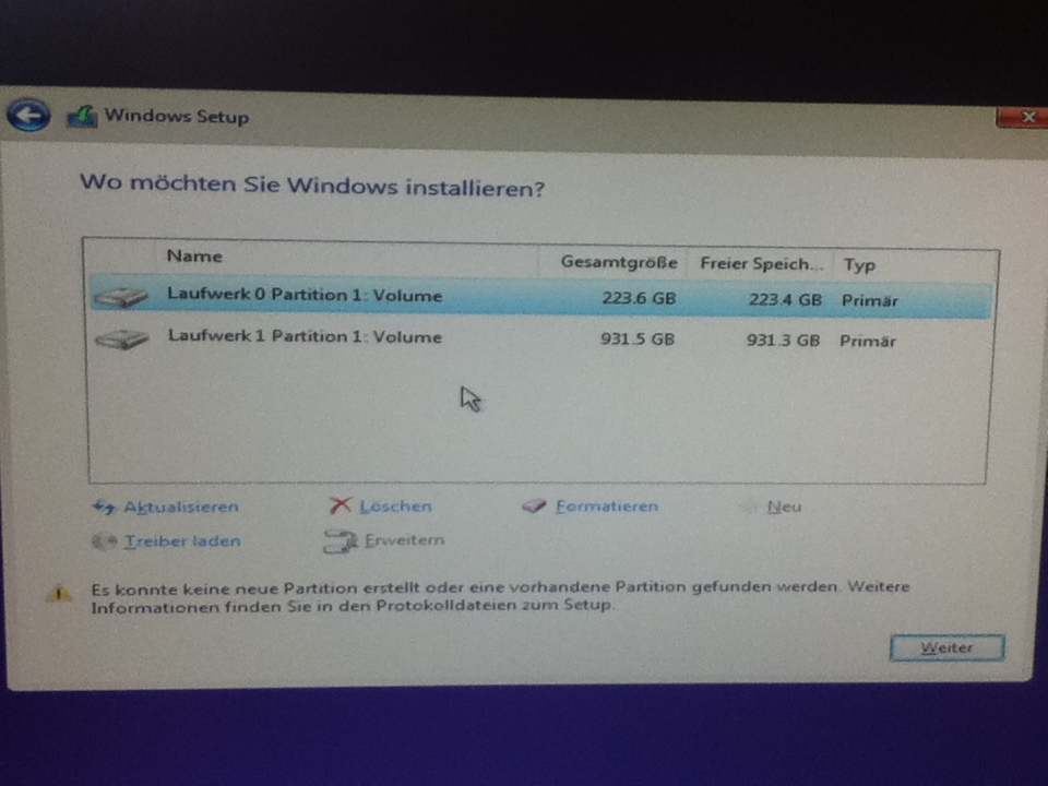 Von windows DVD/Stick booten, im Windows Setup UMSCHALT+F10, um ein Eingabeaufforderungsfenster zu öffnen.Diskpart die Platte cleanen/formatieren. Wie mache ich das?