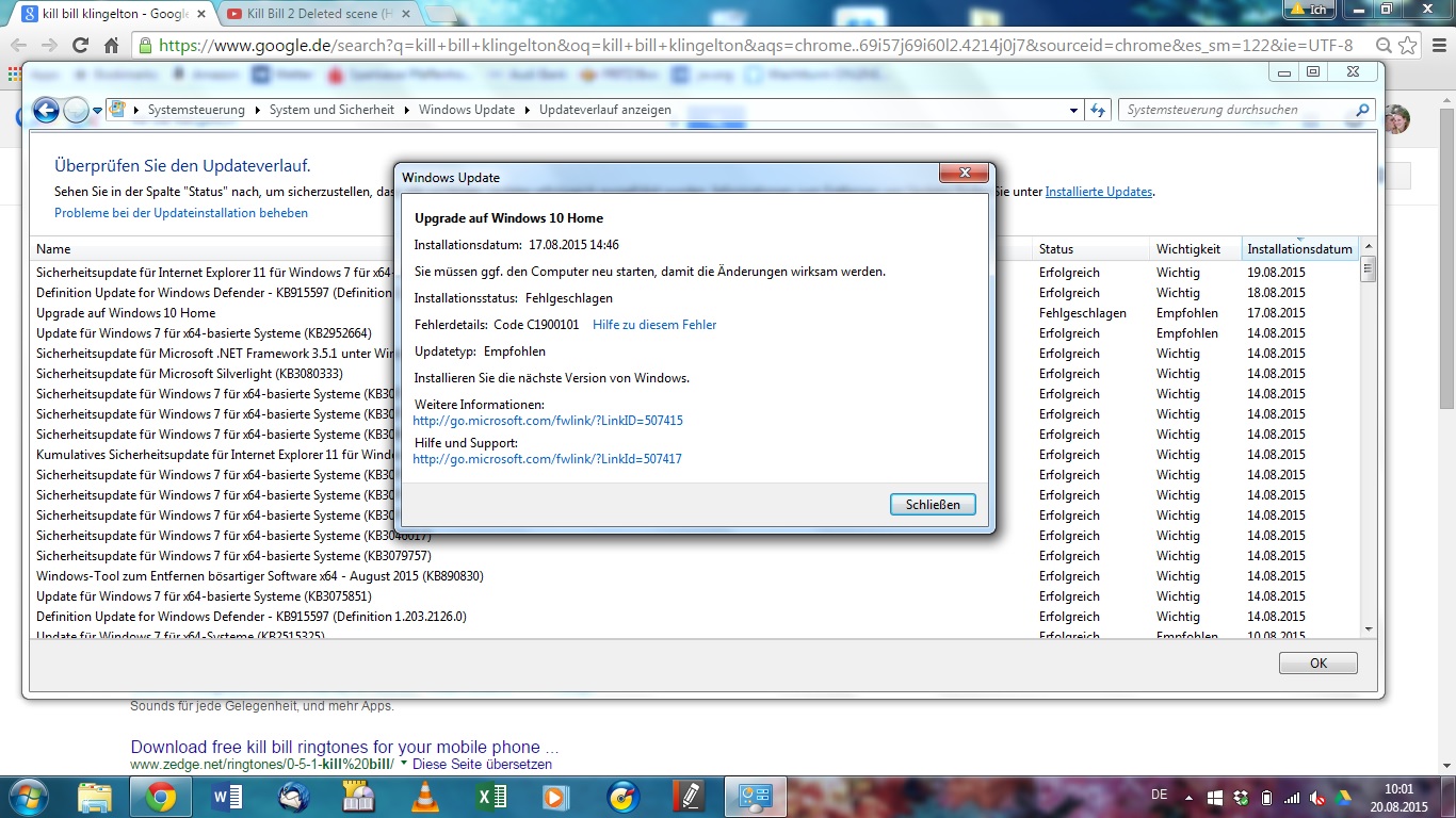 Bei dem Updateverlauf steht die Fehlermeldung, die auf dem angehängten Bild zu finden ist.