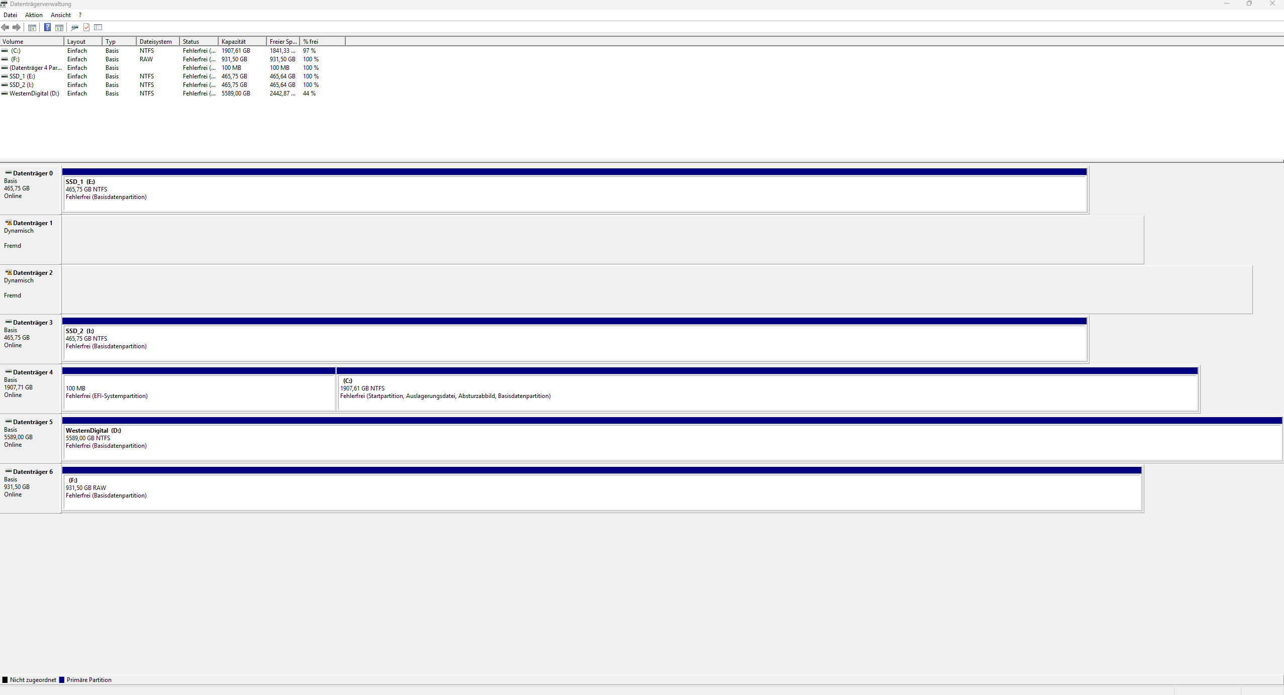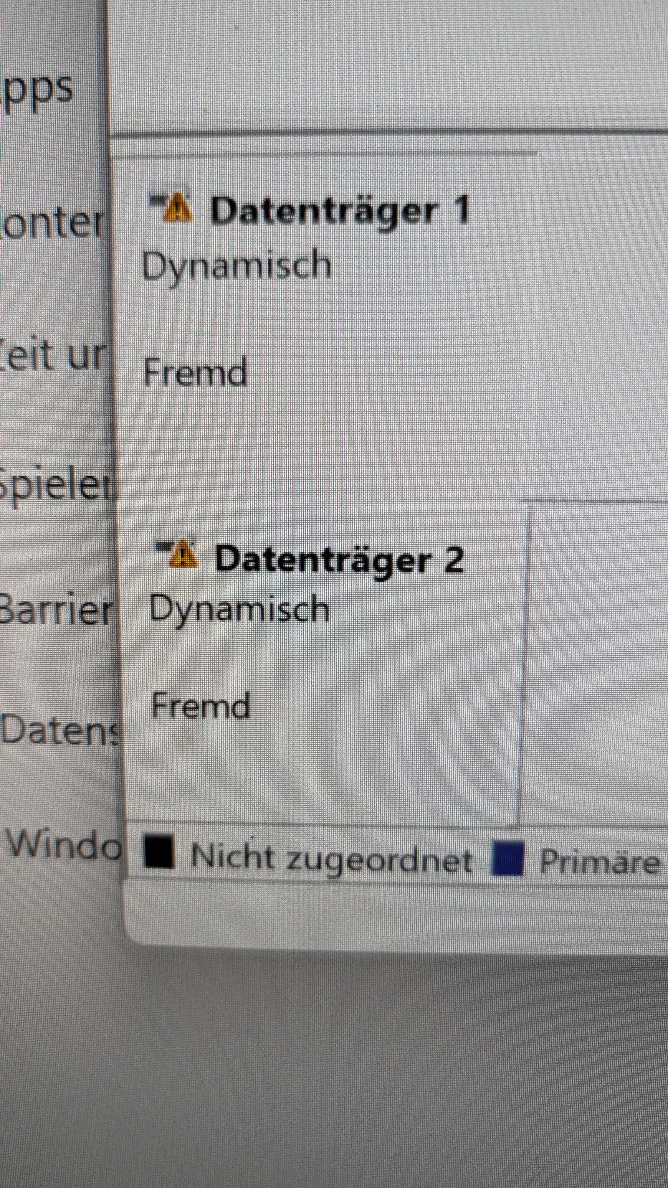 In Windows werden jetzt die beiden HDDs nicht richtig erkannt.