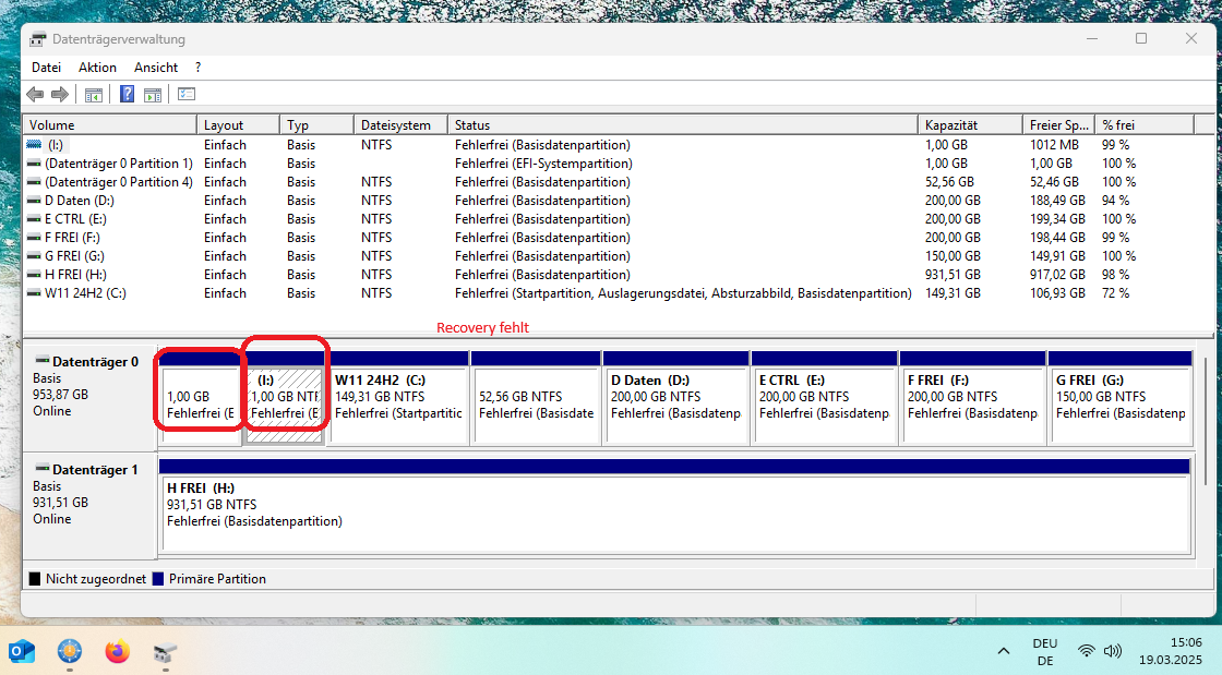 Sonstig sieht man in der Datenträgerverwaltung nicht, nur in Minitool.