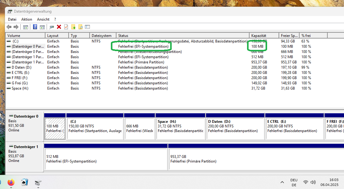 Ausgeführt, EFI mit 499 angelegt, ich kann Setup vom Stick starten. Ich danke Dir vielmal herzlichVolume Z schrieb:Führe das hier aus: