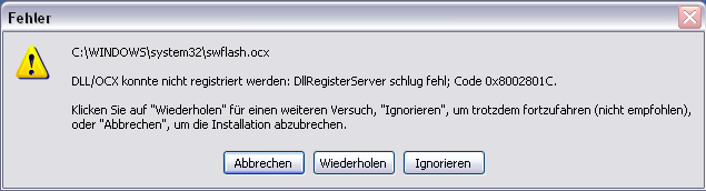 Ich bin über Google schon drauf gestoßen, dass es mit dem Flashplayer zu tun hat, aber auch die Deinstallation sämtlicher Macromedia-Komponenten, dem Einsatz von RegClean und Rechnerneustart haben nix gebracht.