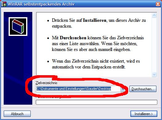 Irgendwie find ich dazu keine Option, meine aber das schonmal gesehn zu haben. So wird immer der Ordner als Ziel angegeben, in dem sich das Archiv gerade befindet.