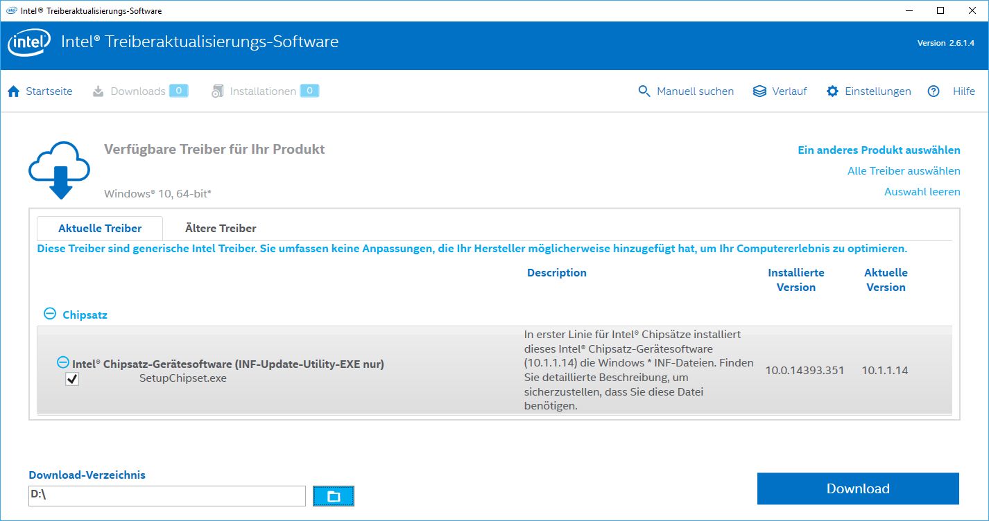 wie kann ich herausfinden, welche Chipsatztreiber installiert sind? Mein Windows 10 Pro 64 Bit hat Probleme mit meiner zweiten SSD, welches mit dem Anniversary Updates ständig hängt. Nun wollte ich den Chipsatztreiber und alle anderen Motherboardkomponenten möglichst aktualisieren. Leider funktioniert die Aktualisierung der Chipsatztreiber nicht. Mit der intel Treiberaktualisierungs-Software wird mir eine aktuellere Version angezeigt, welches ich downloaden und installieren kann. Jedoch findet die Software nach Neustart immer wieder die Vorversion und bietet Download und Installation an.