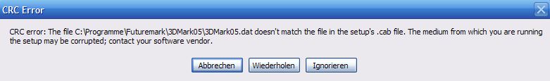 Falls ich ein Programm (z.B. WinDVD) oder ein Spiel von einer CD installieren will, kommen immer wieder Fehler wie z.B.: