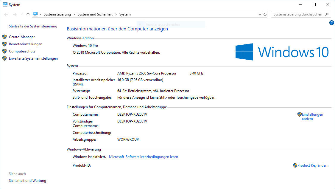 Meine PC-Konfiguration sieht wie folgt aus: