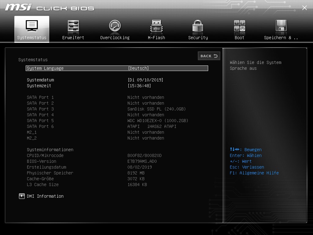 Das BIOS/UEFI wurde auf den letzten Stand (Version 7B79vAD) upgedatet. Im BIOS werden nur 8 GB angezeigt, siehe Bilder. In Windows werden komischerweise 16 GB erkannt, wovon jedoch nur 7,95 GB verwendbar sind.