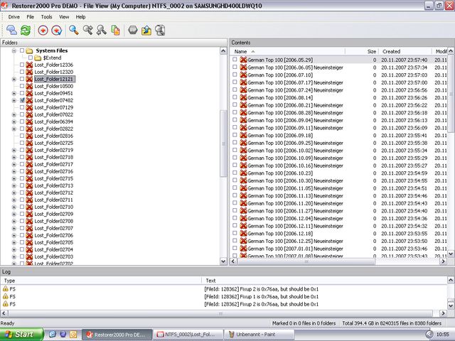 Mache mir mal einen Scan mit Datenrettuntgssoftware in der Testversion.