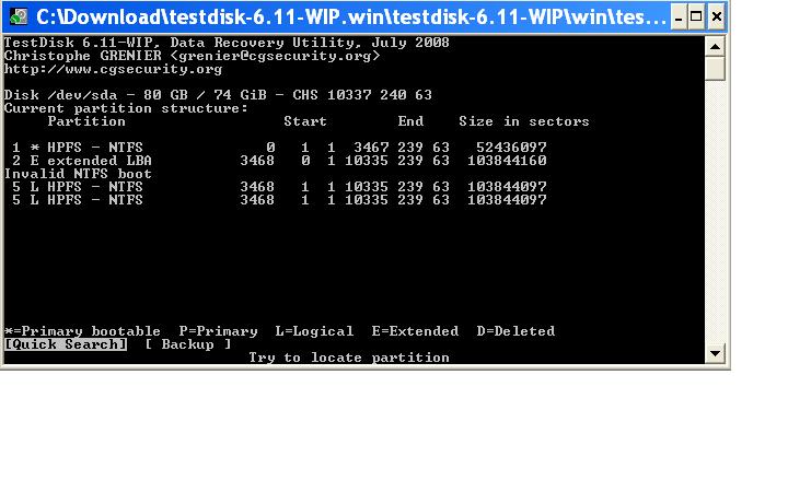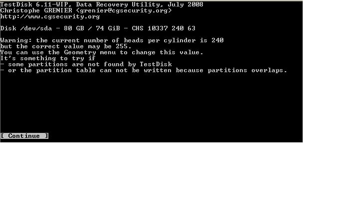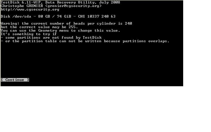 Wenn Testdisk zu lange sucht (mehr als einige Minuten, teile es mit.
