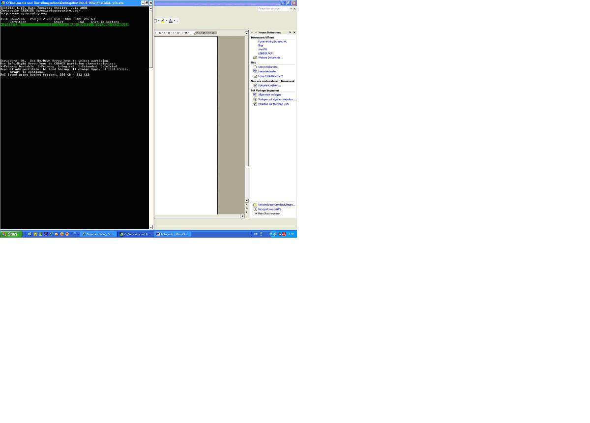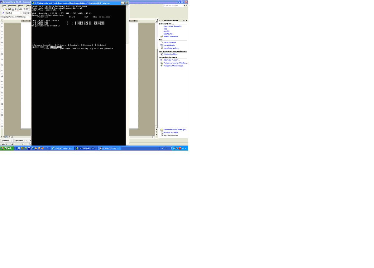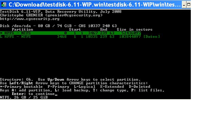 Markiere mal deine Partition Daten und drücke p ob deine Daten oder eine Fehlermeldung angezeigt wird.